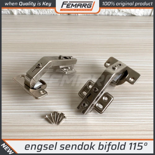 Femarg Bifold Hinge menghadirkan solusi ideal untuk sistem pintu lipat dua pada kabinet dan lemari modern. Didesain presisi, anti karat, dan mudah dipasang — menciptakan fungsi maksimal dengan tampilan yang elegan. Pilih Femarg, karena setiap detail berarti.